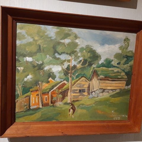 Lite oljemaleri med ramme . 14-40 . Kan sendes som post . Ta kontakt .