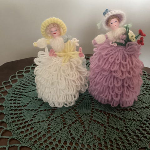 Kone og mann leirefigurer med oppheng for vegg