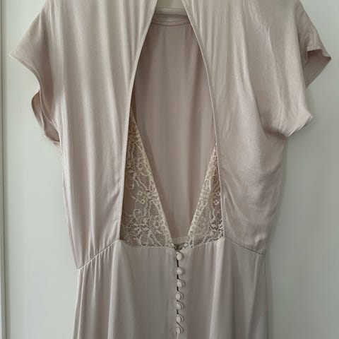 Nydelig maxi kjole fra mango med tynne stropper og litt løs på. Desverre lite brukt siden den blei for liten til meg etterhvert.