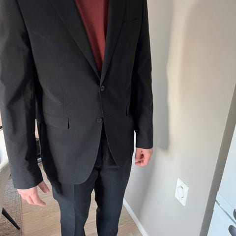Buksen er lagt opp av skredder, og passer til ca 160 i høyde.