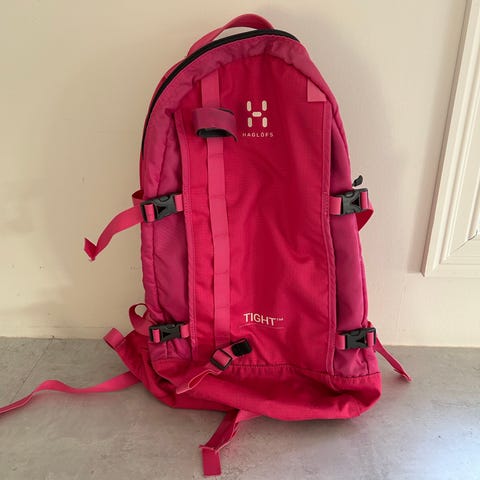 Liten praktisk sekk som kan brukes som tursekk eller til weekendturen. Sideåpning. Mange små lommer på begge sider. Bare brukt et par ganger så den ser helt ny ut.
