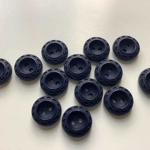 Vintage knapper i blålilla plastmateriale, 30 mm i diameter. Prisen er for alle samlet.