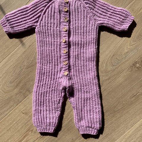 Rosa strikket i Big Merino 100% merinoull str 1-3 mndr kr.450,-
