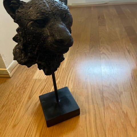 Trefigur av leopard-mamma og leopard-barn fra Tanzania.