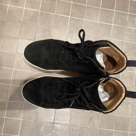 Såle satt på i etterkant under. Selges billig da den ene skoen har noe slitasje i skinnet på hel. Elles nesten ikke brukt. Hel høyde 7,7 cm
