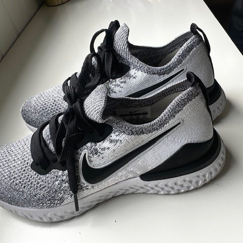 Ingen slitasje i hælen eller på innsiden, men litt slitasje på utsiden.