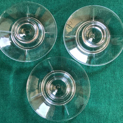 To glass skåler fra Orrefors med nissemotiv i glasset. De er 14 cm i diameter ig 4,5 cm høye.