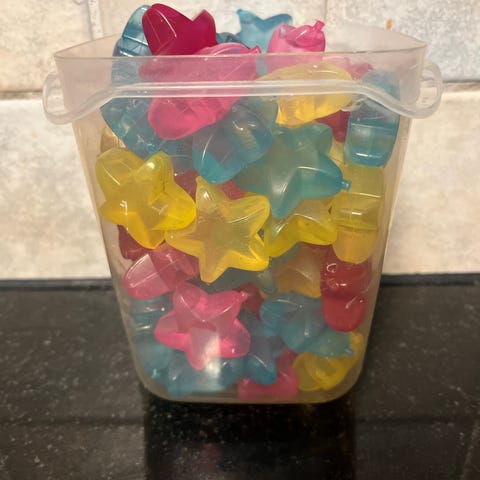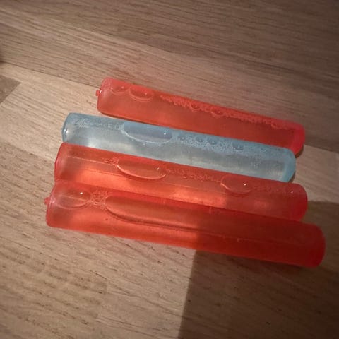 To pakker med isbiter som kan brukes flere ganger. Supre som dekorasjon. De ble kjøpt, men ikke brukt. Selges for halv pris. 40 kr per pakke.
