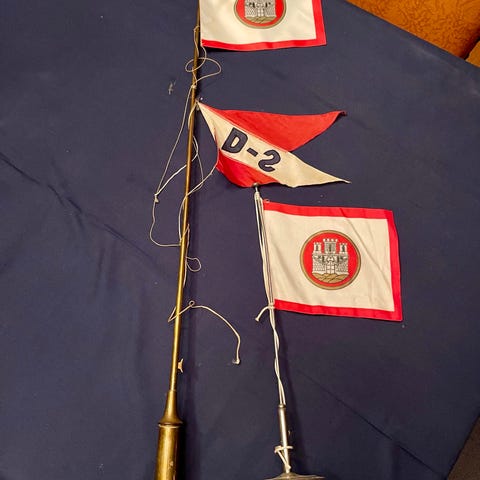 antikk flagg lenke og flagg på stang med fot.Bud ønskes😀