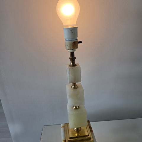 Lampefot/bordlampe i Onyx. Høyde: 54 cm. Tung.