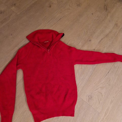 Brystvidde ca 52 cm (NB: elastisk vrangbordstrikk 52 - 58 cm).