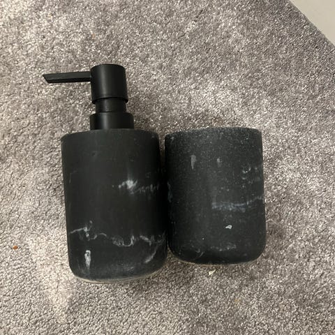 Svært pene, tidløse, solide og tunge såpedispensere selges. Laget i ekte sten (granitt) og veier en god del. Som også gjør dem mer stabil. Den ene er polert og den andre er grov/ubehandlet. Som par gjør de seg veldig godt sammen. Men kan også selges separat ved ønske om det.