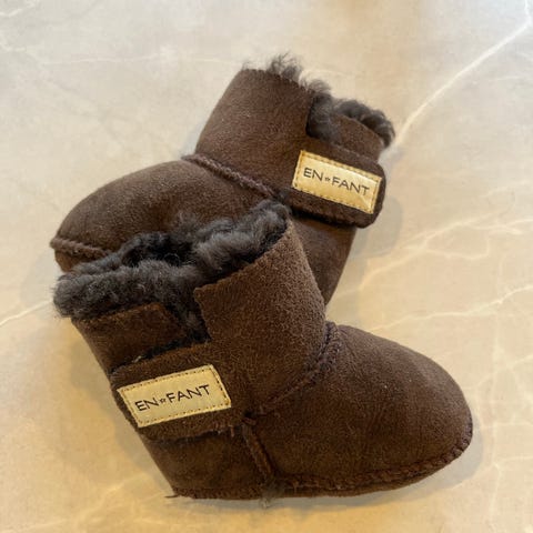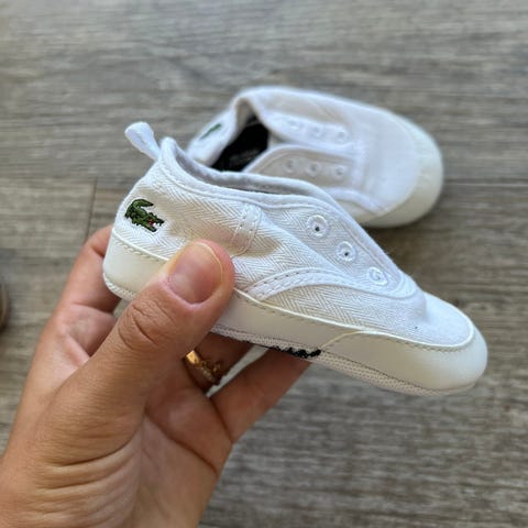Lacoste baby tøfler som vi fikk i gave ble aldri prøvd eller brukt. De ble bare stående til pynt i hyllen på barnerommet. Str 16