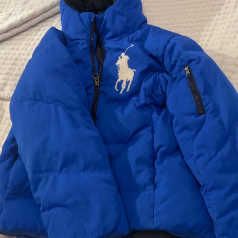 Ralph Lauren dunjakke i str. 7 år selges billig. Den trenger en vask, men kan ikke garantere at flekken på skulderen går bort. Den selges av den grunn til kr. 300.