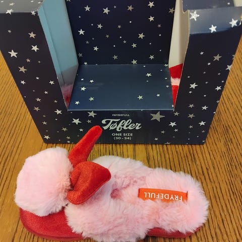 Lite brukt barnetøfler for jenter str. 30-35 selges. 100% polyester.
