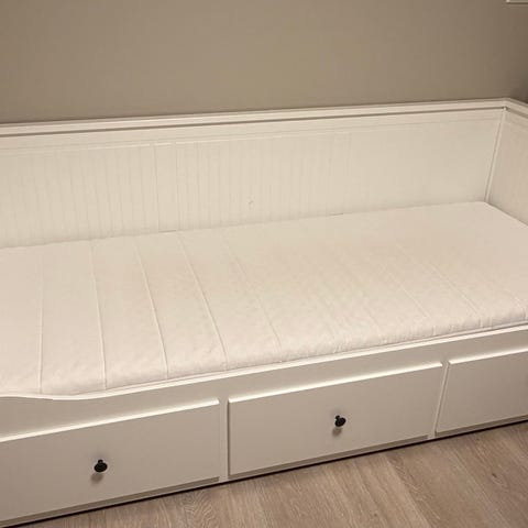 Selger en kjempefin seng med madrass, brukt i ca 2år. Den har lite bruks merke, neste som ny. Madrassen er så god som ny. Har bytta håndtakene til skuffene til sånn diamant håndtak. Tre kjempe store og praktiske skuffer, som man kan ha oppi mye. Senga og madrassen er veldig deilig å ligge og veldig komfortabelt. Selges fordi jeg kjøpte en ny seng. Brede 80cm og lengden 200cm. Ta kontakt om du lurer på noe