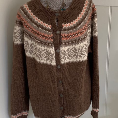 Ny og lekker strikket genser selges. Nydelig farge og genseren er strikket i mykt garn. Ekstra detaljer på armene.