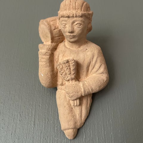 Originalen er fra 1270-1300 og befinner seg i museet i Erkebispegården. Kopien som står på vestveggen av Nidarosdomen, er rekonstruert av Kristofer Leirdal, og har en bok i hånden.