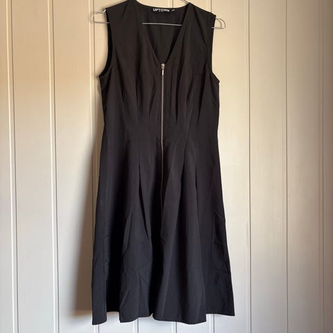 Sort, kort kjole med utsvingt skjørt 🖤 Den er helt ny og ubrukt, har kun prøvd den på. Kjøpt i New York for noen år siden. Veldig anvendelig kjole til alle årstider 😊 Merkelappen sier str 10, som tilsvarer XS/S, men den kan passe str M også.