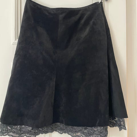 Brukt 2 ganger, str 42 UK. Glidelås nederst v/leggen.