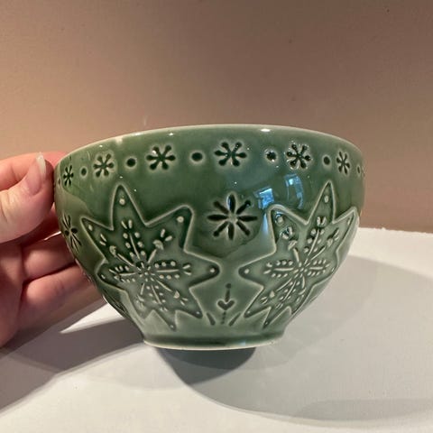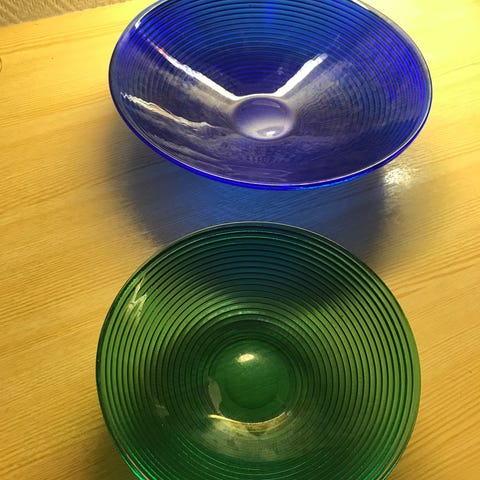 Tre flotte skåler i en nydelig grønn farge selges. Skålene er 16.cm i diam og har en høyde på 4.5 cm. Alle tre skålene er i veldig fin stand.
