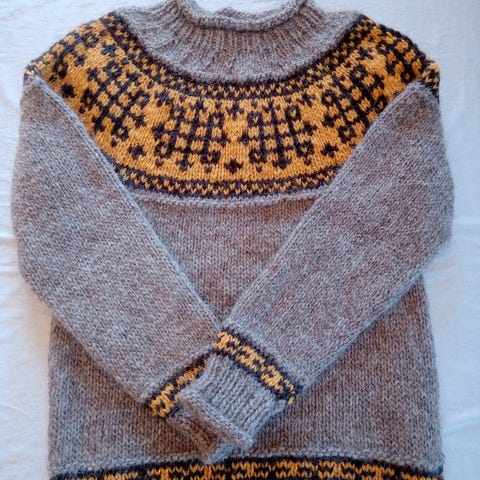 Håndstrikket genser i 100% Islandsk ull. Aldri brukt.
