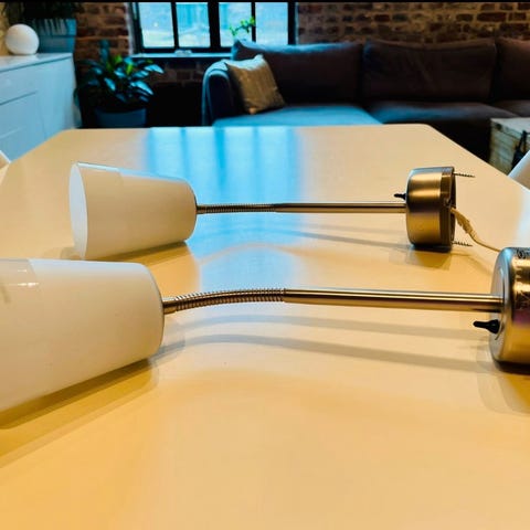 To vegglamper med ledd-/sving-arm som gir svært godt lys selges