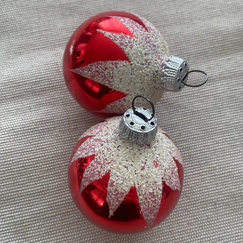 Eldre julekuler i glass selges.
