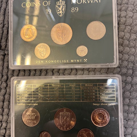 Kongelige mynt SELGES BILLIG. 300 kr .per sett. Kan sendes i hele Norge. Hvis du kjøper alle sammen så får du for 2500 alle mynter og andre ting som har på bilder.