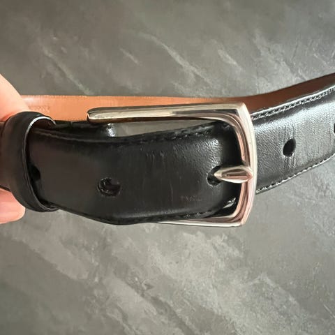 Sort/ svart belte med strassteiner 70cm langt. 5 hull/ kan lages flere. Beltet er ubrukt og prislapp er på. Lærbelte .Pris 299.
