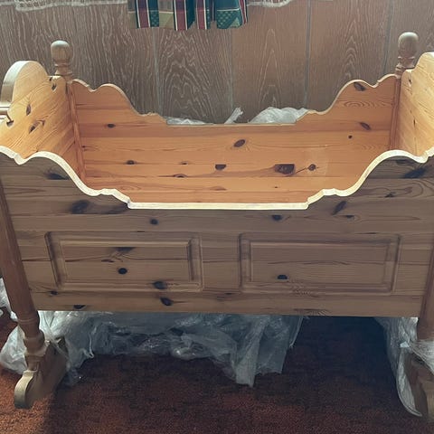 Lastebil i bevegelseFiks ferdig3 500 krNy håndlaget Vogge / Vugge i furuFørresfjordenLegg til som favoritt.