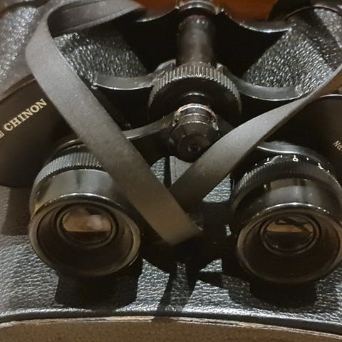 Kommer levert med bærestropp, linsebeskyttere og futeral.