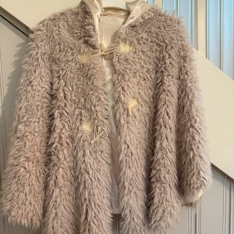 Nydelig lilla Møller Pels jakke til ca.18000. med pelskrage og pels ermer.