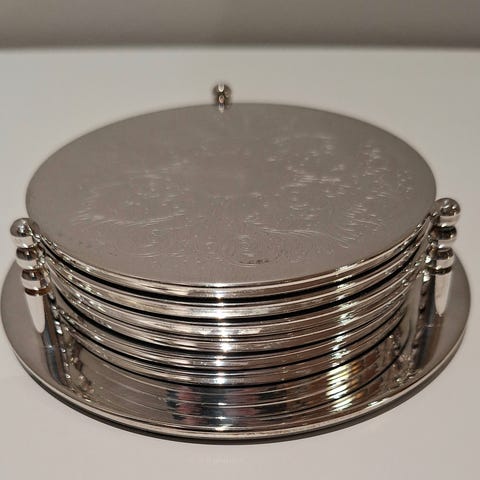 Sølv Glassunderlag. Coasters. Brikker. Silver plate. Pent til jul / 17.mai