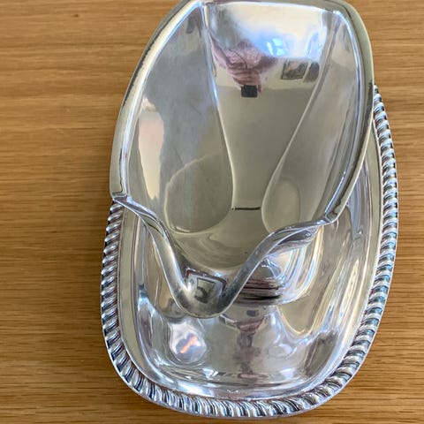 Meget pen og lite brukt sausenebb med blomster og gullstafferinger. Ca 1950 - 60-tallet. Ingen slitasje. Fin og blank i glasuren. - kr. 100,-.