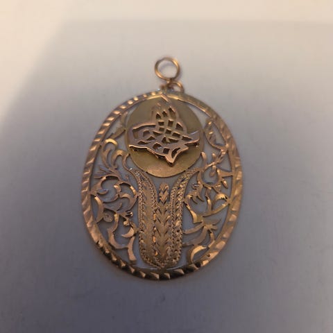 Smykke/anheng med sol i senter omkranset av stjernetegnet selges kr. 22 000,- Anhenget er i 585 gull. Den delen av anhenget som smykke skal løpe gjennom er innvendig bredde 6 mm. og 7 mm. høy. Kjøper betaler frakt. Eventuelt så kan anhenget hentes på selgers adresse.
