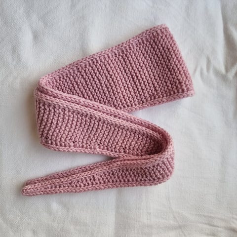 Hjemmestrikket ørevarmer med tvist i superdeilig og mykt garn. Strikket i Pickles Tjukk Merino og Pickles Silk Mohair. Passer S-M dame. Kun prøvd på, så helt som ny.