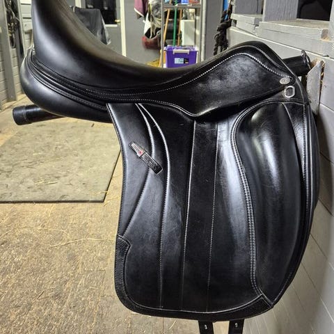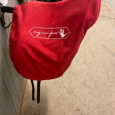 Pent brukt equipe olympia dressursal vurderes solgt til rett pris. Den er brun men ser sort ut, viser litt brunfarge i solen. Pusset hver gang etter bruk, kun normal bruks slitasje, kjøpt brukt så vet ikke hvilket år den er kjøpt men ser helt fin ut. 17 i setet og +1 i bommen.