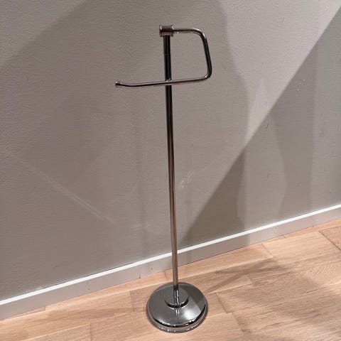 Forkrommet toalettrullholder i solid design med toalettbørsteholder (børstehåndaket følger med; børstehodet er ikke inkludert). Et godt alternativ for deg som ikke vil bore hull i veggen på badet.