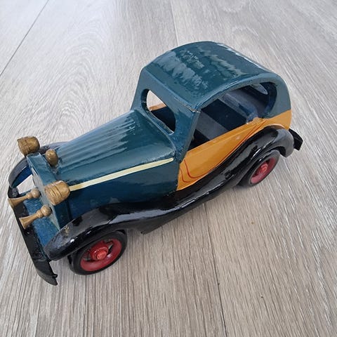 STOR GRØNN BIL-KAN VÆRE EN MERCEDES-CITROEN-STÅR VIS 717 TOYS PÅ UNDER SIDEN. HARD PLAST 12.5 CM LANG-5 CM BREDDE. KAN VÆRE FRA USA-KR 200 + FRAKT