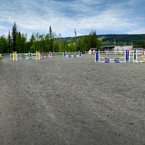 Ridehallen vår er på 20x40, og er stort sett tilgjengelig til enhver tid! Oppgradert bunn og ny LED belysning. Vi har mye utetid for hestene, og ingen dugnadsordning. Ute er det mulighet for egen luftegård med tilgang til strøm for oppvarmet vannkar. Vi har også en velfungerende hoppeflokk som går på fri fortilgang på dagtid og med varmt drikkekar ute. Det er flotte turområder her, og det er tilgjengelig løype på jordene her for trening vinterstid.