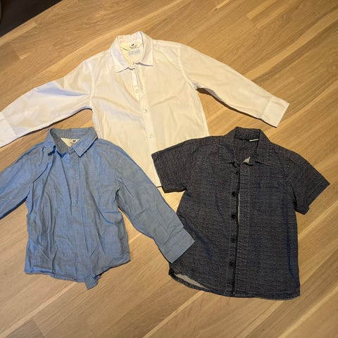 Selger 5 pene skjorter fra Name it, Ugly childrens clothes, Absorba, Complices og Noddy i størrelse 104. Name it ubrukt, muligens kun vasket. Andre brukt 1-2 ganger max, og er uten skader eller flekker. Noody (lilla med ruter) kan også brukes som jakke.