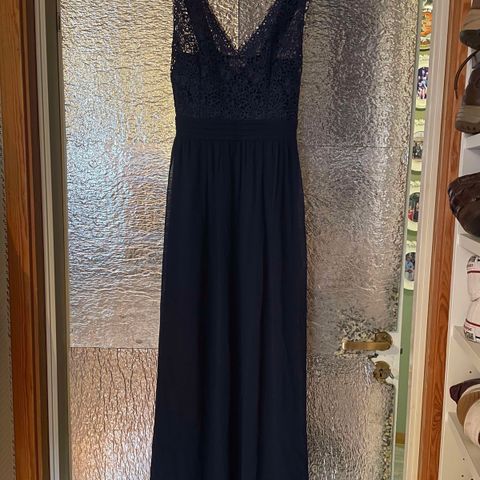 Veldig elegant lang marineblå kjole