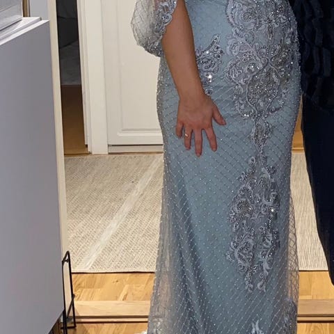 Sendes/ hentes i oslo. Kjolen er en s, men med spiler i overdelen og er noe romslig oppe.