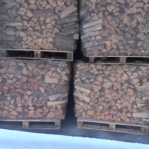 1000liter ladd i sekker med blandingsved selges. Løftes på henger med traktor.