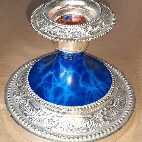 Nydelig lysestake med gullbånd.