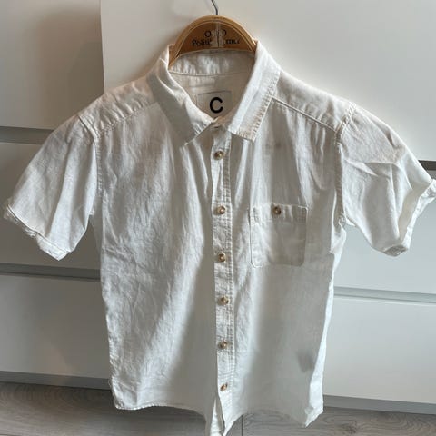 Kortermet skjorte i bomull og lin, str 10 år