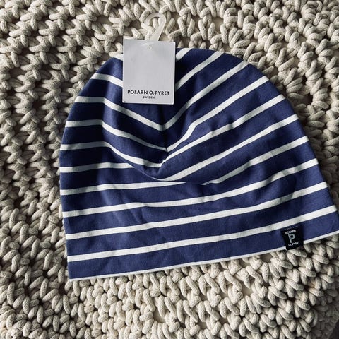 Kjøpt for eksraklær til bbarn. Ubrukt. Nå vokst fra. så ligget i skuff noen år. Recycled polyester. Kjøper betaler porto.