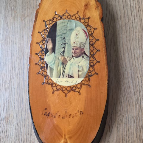 Selger minneplaten fra pave Johannes Paulus II besøk i Storbritania aug. 1982 Er 12cm i diameter. Hel og fin. Kjøpt på vår tur til England for "maange" år siden. Håper det er noen der ute som vil gi den et nytt hjem. Har stått trygt og godt i et skap!
