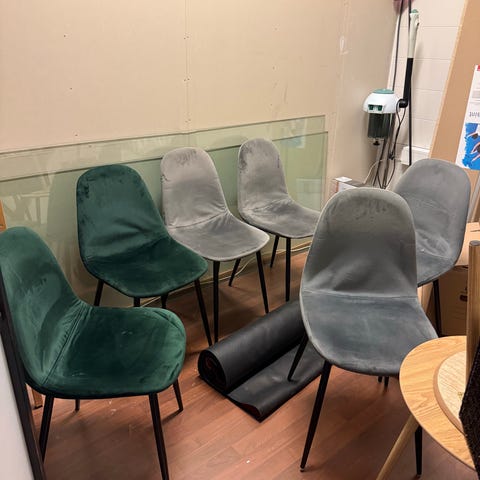 4 pene stoler fra Skeidar .. selges for 600.- til sammen . Stolene er kjempe god og sitte i.